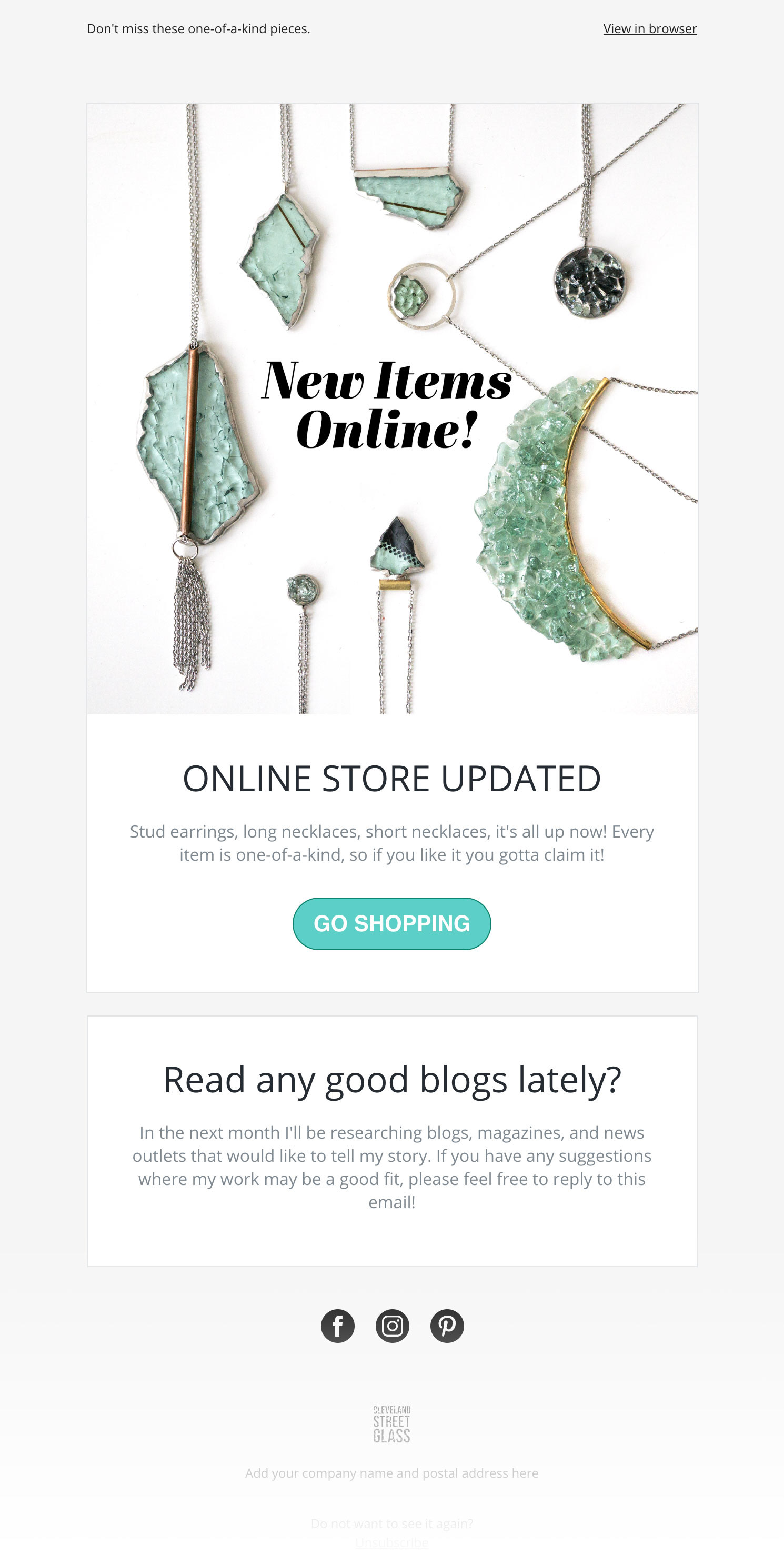 Note: Cleveland Street Glass jewelry is no longer available. The project ran from 2016-2019.
